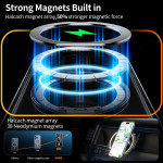 Custodia in PC trasparente di alta qualità per iPhone 14 Pro Max. Supporto magnetico rotante a 360° integrato per una visione ottimale a mani libere. Compatibile MagSafe con 38 magneti al neodimio per una forza magnetica superiore. Protezione certificata contro le cadute di livello militare.