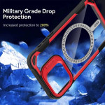 Proteggete il tuo iPhone 14 Pro Max con questa innovativa cover dotata di un supporto integrato nella cornice dell'obiettivo. Compatibile con MagSafe e con il potente magnete N52 per una ricarica rapida e un fissaggio sicuro. Il design pratico consente di liberare le mani per una visione confortevole.