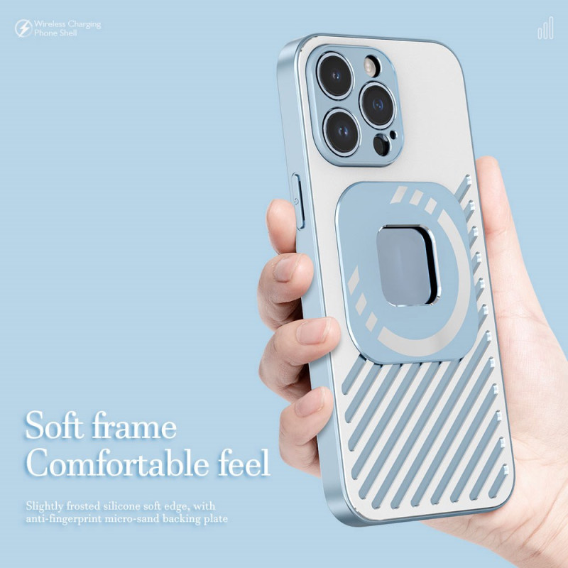 Coque magnétique premium avec design ajouré pour une dissipation thermique optimale. Compatible MagSafe avec 16 aimants N52H ultra-puissants. Protection renforcée anti-chute en TPU, PC et alliage métallique pour votre iPhone 14 Pro Max.