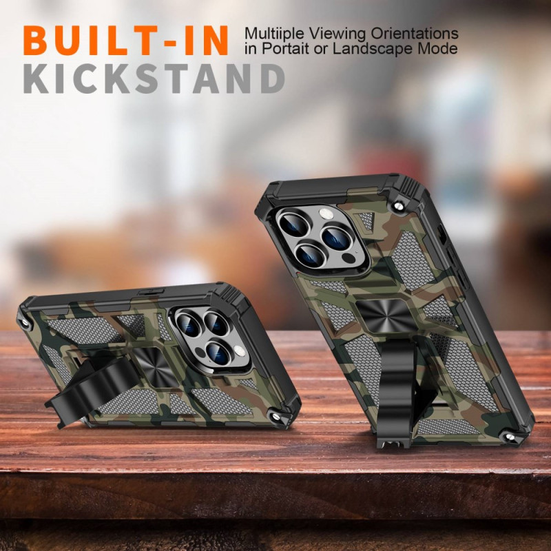 Scopri questa cover Camouflage, dotata di un supporto rimovibile, per proteggere il tuo iPhone 14 Pro Max.
