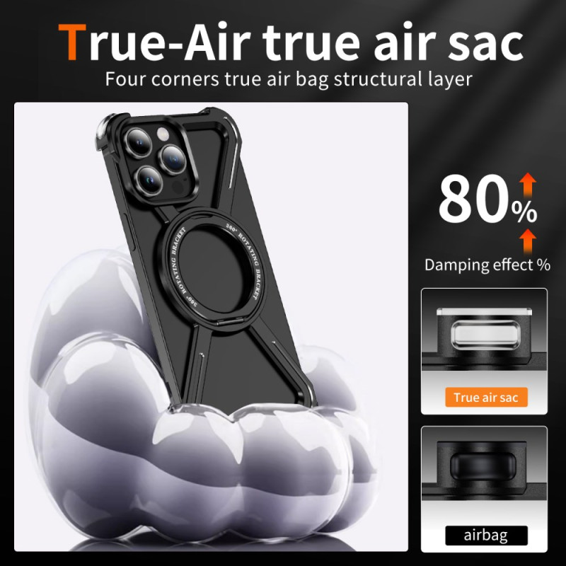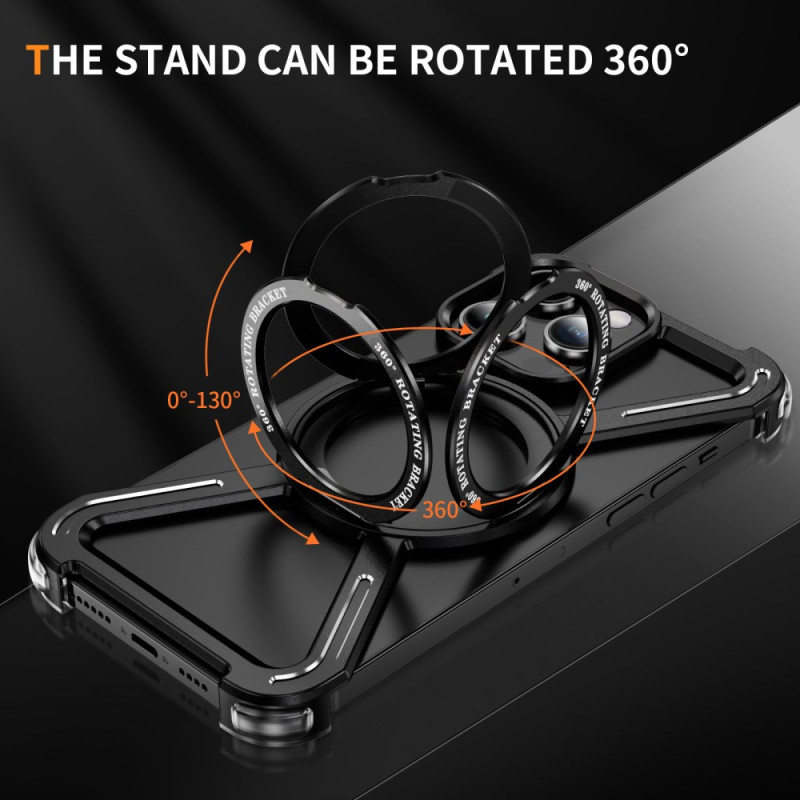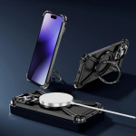 Scoprite la nostra innovativa cover bumper per iPhone 14 Pro. Dotata di un supporto rotante a 360°, è compatibile con MagSafe e offre un'eccellente dissipazione del calore. Il suo design minimalista in metallo con cornice senza bordi garantisce una protezione ottimale preservando l'estetica del dispositivo.