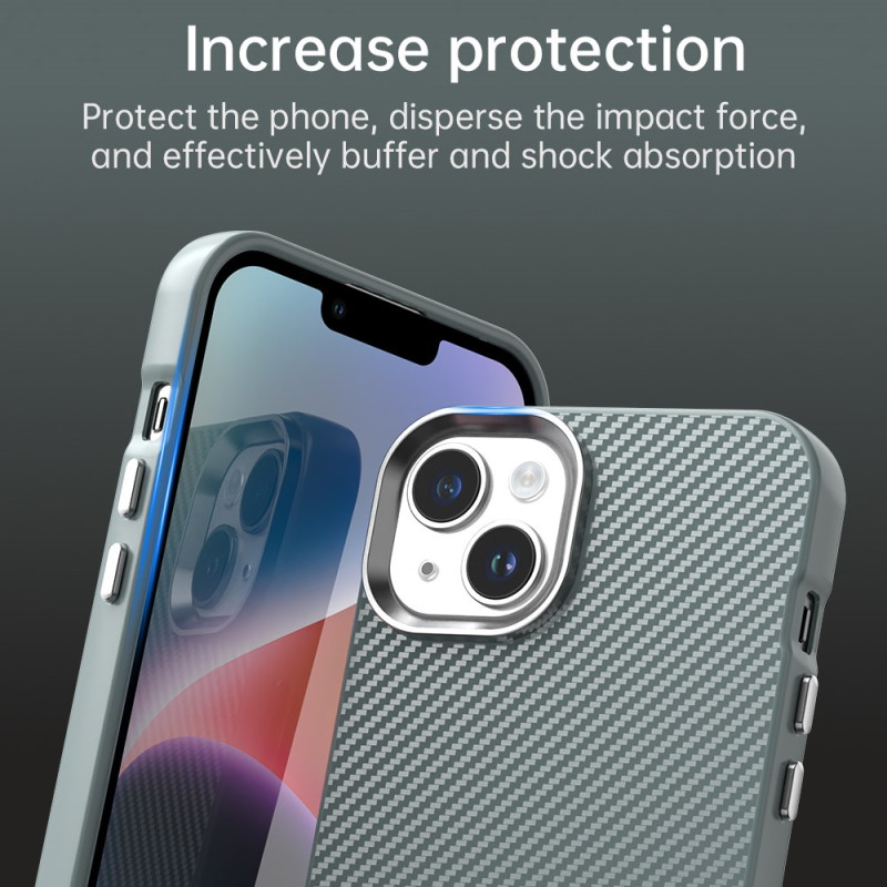 ibrida per iPhone 14 / 13. Realizzata con materiali di alta qualità, offre una protezione duratura contro l'usura quotidiana. La texture in fibra di carbonio aggiunge un tocco di modernità e migliora la presa.