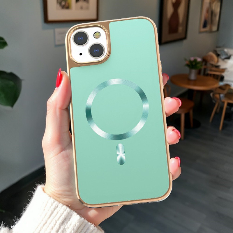 Scoprite la nostra elegante e protettiva cover magnetica per iPhone 15 Plus. Compatibile con MagSafe, offre un'elegante finitura galvanica e una resistente protezione dagli urti. Consente l'accesso completo alle funzioni del telefono e una maggiore protezione schermo e della fotocamera.
