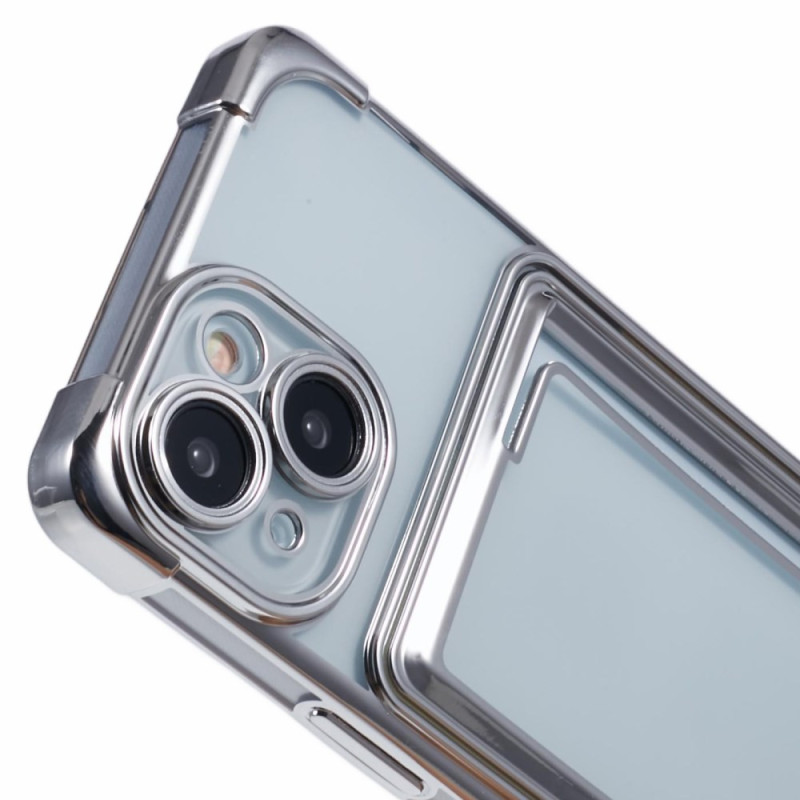 Scoprite la nostra elegante cover protettiva per iPhone 15 Plus. Realizzata in TPU di alta qualità, offre resistenza e flessibilità. Grazie al portacarte integrato e alla finitura galvanica, unisce praticità e stile. La protezione rinforzata ai quattro angoli garantisce una protezione ottimale dagli urti.