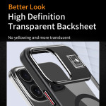 protettiva per iPhone 15 Pro Max. Combinando durata e funzionalità, offre una protezione robusta grazie al TPU flessibile e al pannello posteriore in acrilico trasparente. Il cavalletto integrato e la compatibilità con MagSafe la rendono un accessorio versatile e pratico per la vita di tutti i giorni.