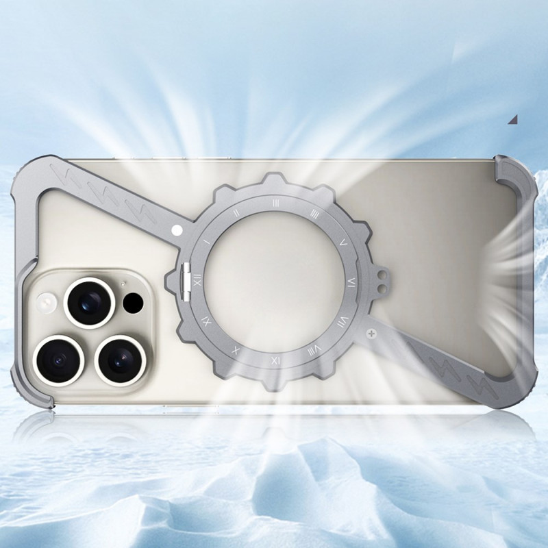 per iPhone 15 Pro Max. Dotata di cavalletto girevole a 360°, offre compatibilità MagSafe, struttura in lega di alluminio resistente e protezione angolare rinforzata. Il suo esclusivo design a forma di Z combina estetica e funzionalità per un'esperienza d'uso ottimale.