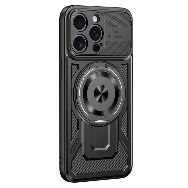 Scoprite la nostra cover protettiva definitiva per iPhone 15 Pro. Dotata di un supporto rotante a 360° e di compatibilità MagSafe, offre una protezione di livello militare grazie al doppio strato in TPU e PC. Il suo design ergonomico con texture in carbonio combina stile e funzionalità per un uso quotidiano ottimale.