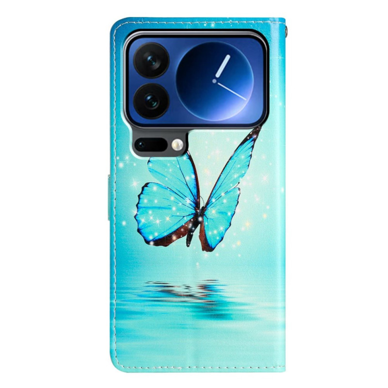 Scoprite la nostra elegante cover a portafoglio per lo Xiaomi 17 Pro Max. Con il suo esclusivo motivo a farfalla blu, unisce stile e funzionalità. Realizzata in pelle PU di alta qualità, presenta 3 scomparti per carte, una tasca per biglietti, una funzione di supporto e una chiusura magnetica. La tracolla e la protezione per la fotocamera garantiscono praticità e sicurezza per l'uso quotidiano.