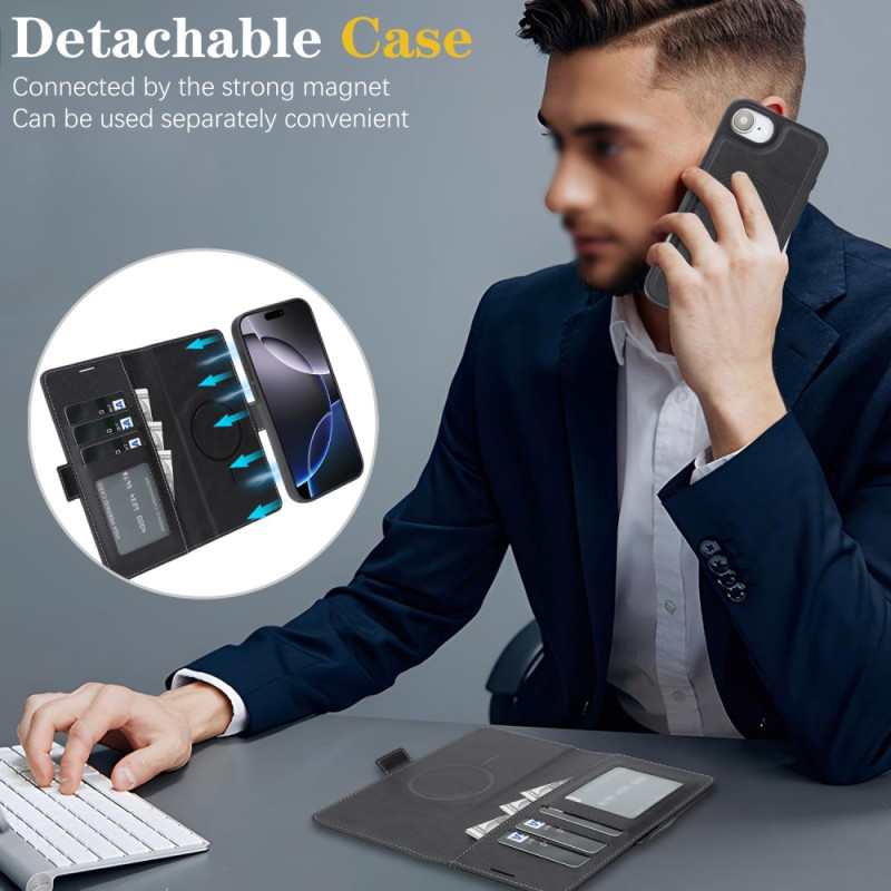Sofisticata cover a portafoglio 2 in 1 con design staccabile magneticamente. Proteggete completamente il tuo iPhone e tenete a portata di mano carte e contanti. Compatibile con gli accessori MagSafe per la massima versatilità.