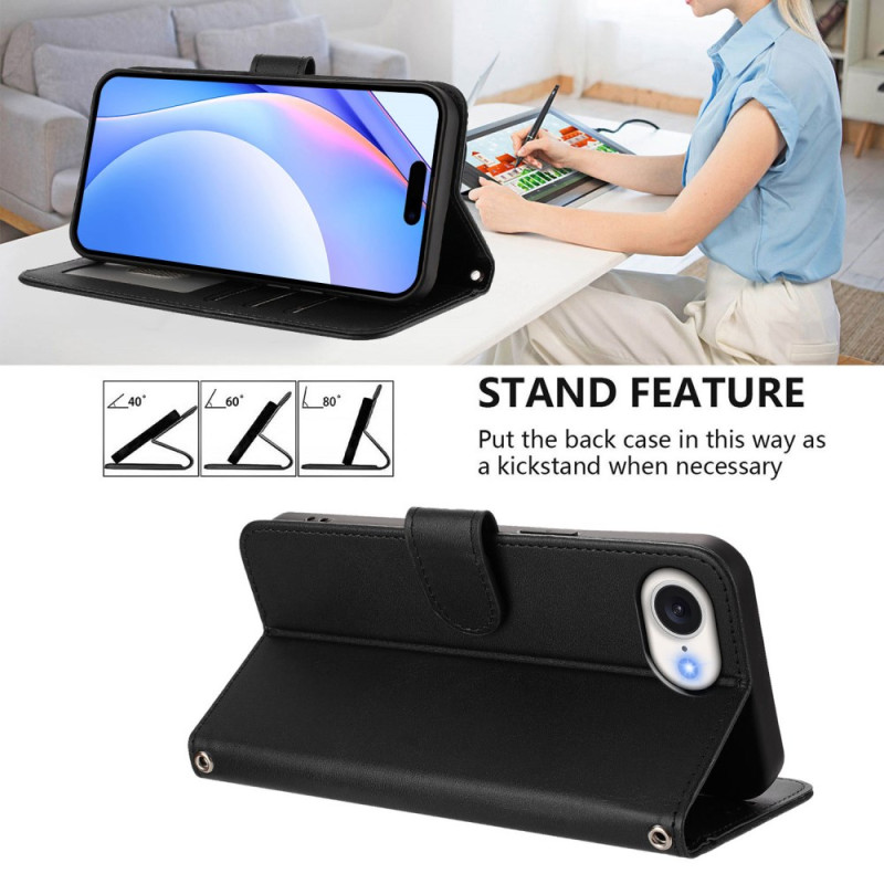 Proteggete il tuo iPhone 17E / 16E con questa elegante cover a portafoglio con blocco RFID. Dotata di più scomparti per carte di credito, di un supporto pieghevole e di un laccetto rimovibile, unisce sicurezza, organizzazione e stile professionale per l'uso quotidiano.