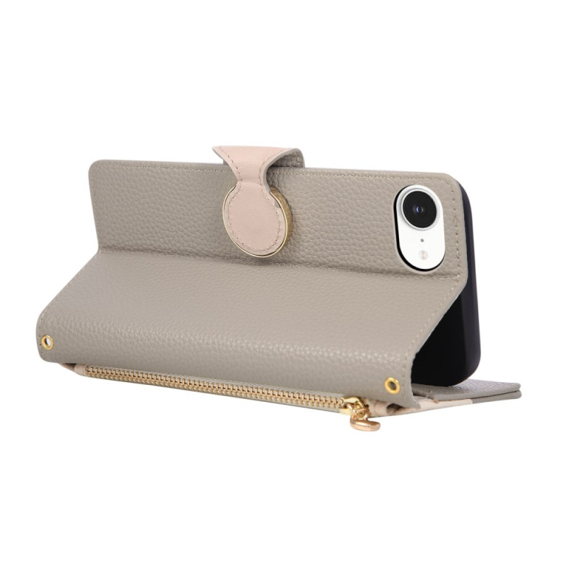 Elegante cover a portafoglio per iPhone 17E / 16E con chiusura a zip e cinturino rimovibile. Combina protezione e funzionalità di alto livello con 3 scomparti per carte, tasca laterale con zip e supporto vivavoce integrato.
