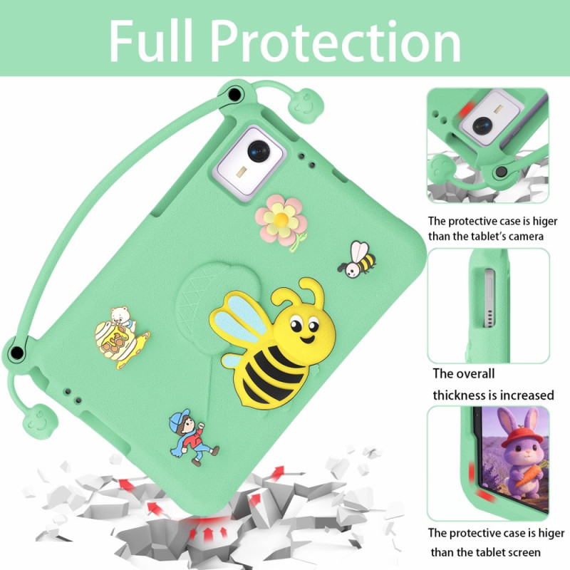 Custodia protettiva per il tablet con un giocoso design a forma di ape, perfetto per i bambini. Dispone di una pratica maniglia per il trasporto e di un supporto pieghevole integrato per una visione a mani libere. Realizzata in materiale spesso e resistente agli urti per una protezione ottimale contro le cadute.