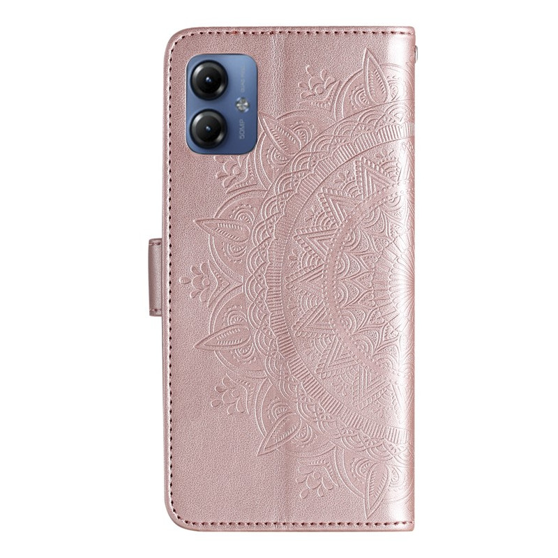 a portafoglio per Motorola Moto G14 4G, decorata con un motivo floreale mandala.