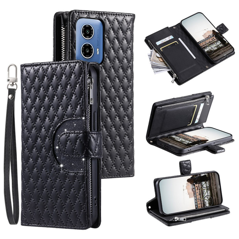 a portafoglio per il Motorola Moto G45 5G / G34 5G. Realizzata in pelle PU di alta qualità, offre una protezione completa con un design unico a rombi.