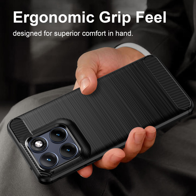 Il design strutturato con effetto fibra di carbonio offre una presa sicura e un look moderno.