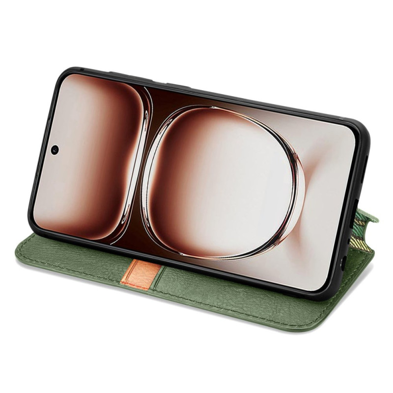 Scoprite la nostra elegante cover a portafoglio in pelle PU per Oppo A3X. Con il suo sofisticato design a rombi, offre una protezione completa aggiungendo un tocco di stile al tuo