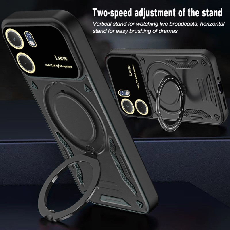 Proteggete il tuo Oppo A5X con questa robusta cover dotata di un supporto magnetico rotante integrato. Compatibile con MagSafe, combina PC e TPU per una protezione ottimale contro urti e graffi. Godetevi la visione mani libere e la ricarica wireless.
