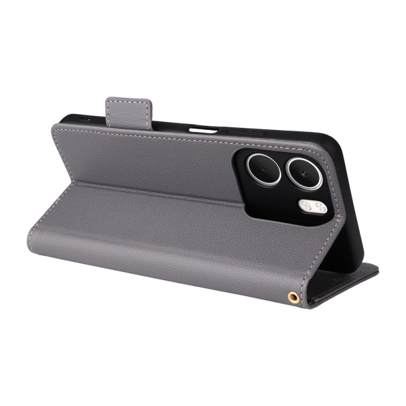 Scoprite questa elegante cover a portafoglio per Oppo A5X 4G, che unisce stile e funzionalità. Caratterizzata da una raffinata texture lychee, offre una protezione completa e integra pratici scomparti per carte e contanti.