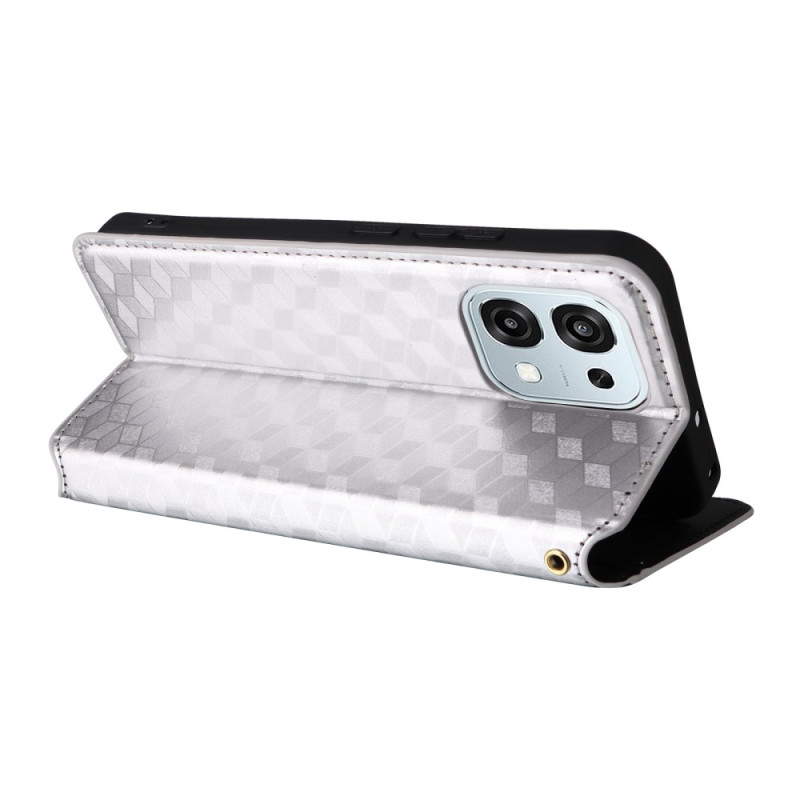 Elegante cover a portafoglio con motivo a diamante 3D per il tuo Oppo A6 Pro 5G. Design funzionale con 2 slot per carte, supporto di visualizzazione regolabile e chiusura magnetica. Protezione completa a 360° contro graffi e cadute.
