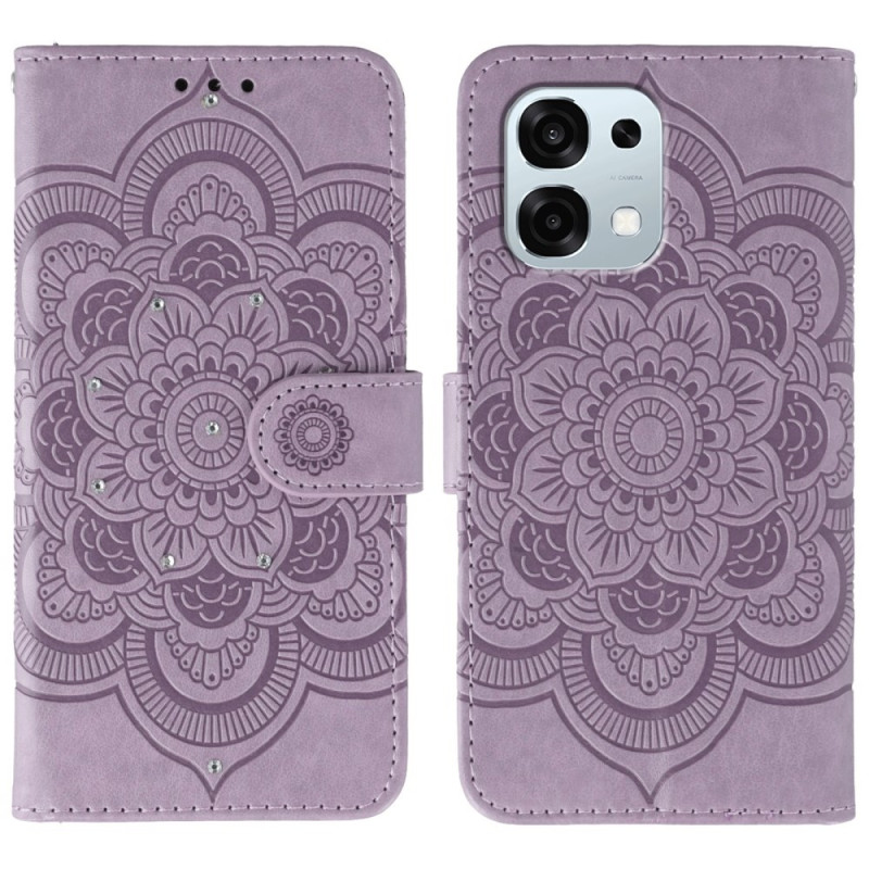Oppo A6 Pro 5G con stile grazie a questa cover con risvolto, caratterizzata da un sofisticato motivo mandala e da strass scintillanti. Dotata di pratiche funzioni, tra cui slot per carte, cinturino e supporto integrato.