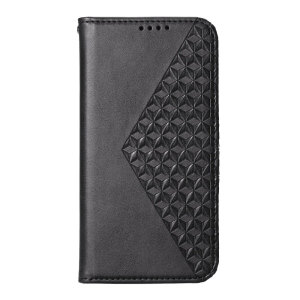 Elegante cover a portafoglio con texture in pelle di vitello per il tuo Oppo A6 Pro 5G / 4G. Design sofisticato con motivo a diamante, slot per carte e scomparto per contanti integrati. Chiusura magnetica sicura, funzione stand e pratico laccetto incluso.