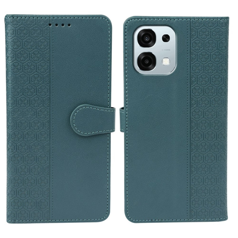 in pelle PU per Oppo A6 Pro 5G con chiusura magnetica sicura. Raffinato design a quadrifoglio, 3 slot per carte e tasca per banconote. Funzione stand integrata per una visione confortevole.