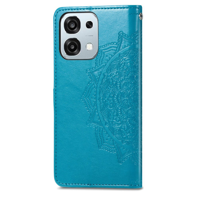 Elegante cover a portafoglio con motivo mandala in rilievo per il tuo Oppo A6 Pro 5. Dispone di 3 scomparti per carte, una tasca per appunti e un supporto integrato per la visualizzazione a mani libere. Protezione ottimale con chiusura magnetica sicura.