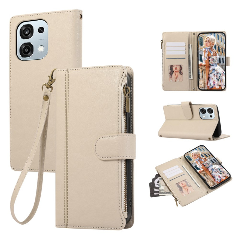 Custodia multifunzione per Oppo A6 Pro 5G con più scomparti per carte, tasca sicura con cerniera e cinturino da polso staccabile. Il design elegante combina protezione premium e praticità quotidiana per il tuo smartphone.