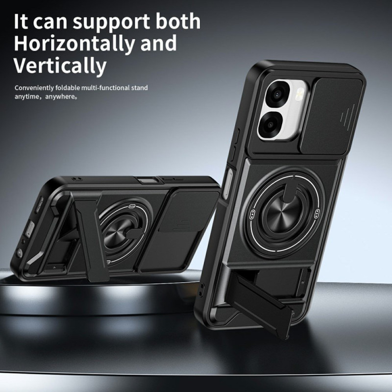 Pratico, incorpora un anello rotante e un supporto pieghevole per l'uso quotidiano.