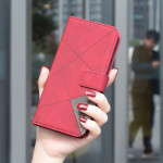 in pelle PU e TPU per Oppo Reno 13F 4G / 5G / FS 5G. Combinando eleganza e funzionalità, offre una protezione completa con un moderno design geometrico.