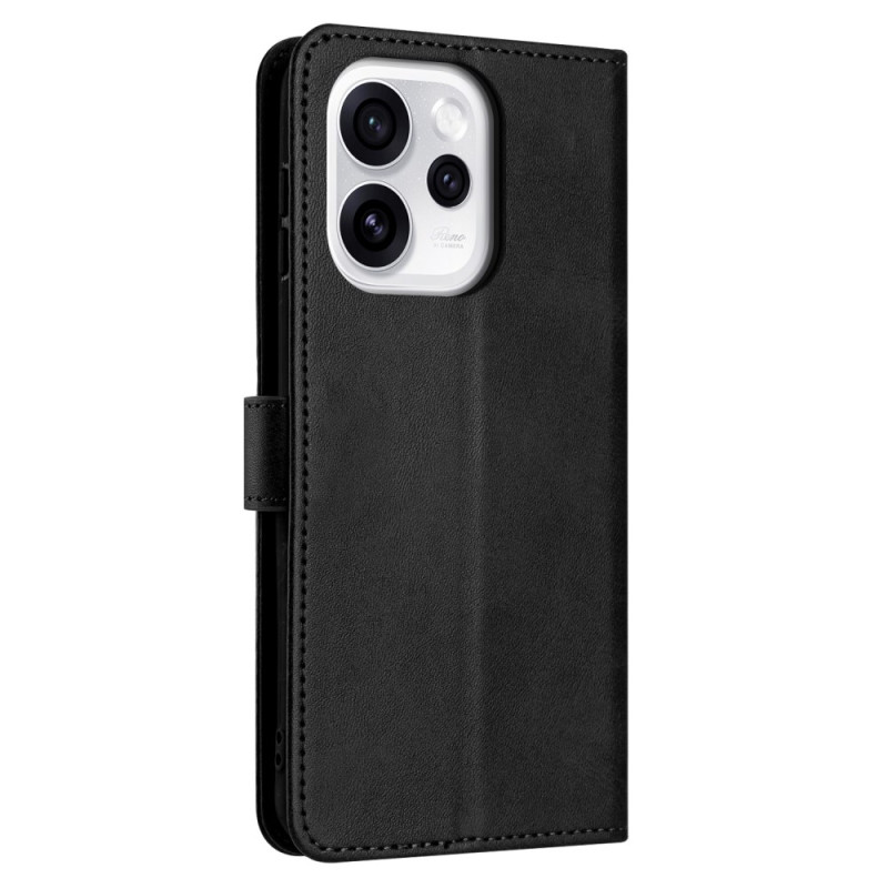 Elegante cover a portafoglio per Oppo Reno 15 Pro 5G con texture in pelle PU premium. Dispone di 3 scomparti per carte, tasca per contanti, supporto regolabile per mani libere e cinturino da polso staccabile. Protezione completa contro urti e graffi.