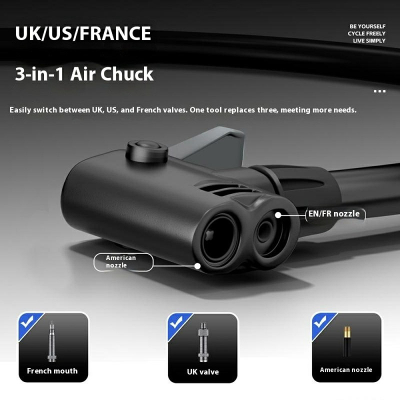 Progettata per garantire la massima efficienza di gonfiaggio, questa pompa è basata su una struttura in acciaio ad alta resistenza. Resiste a pressioni fino a 120 PSI, il che la rende ideale per i pneumatici che richiedono una pressione elevata (bici da strada). La sua versatilità è garantita dalla compatibilità universale con le valvole Presta, Schrader e Dunlop, per tutti i tipi di biciclette, moto e veicoli elettrici. L'impugnatura è rimovibile, per cui è facile da riporre e pompare. Questo dispositivo è un assistente indispensabile per la manutenzione domestica e per i viaggi.