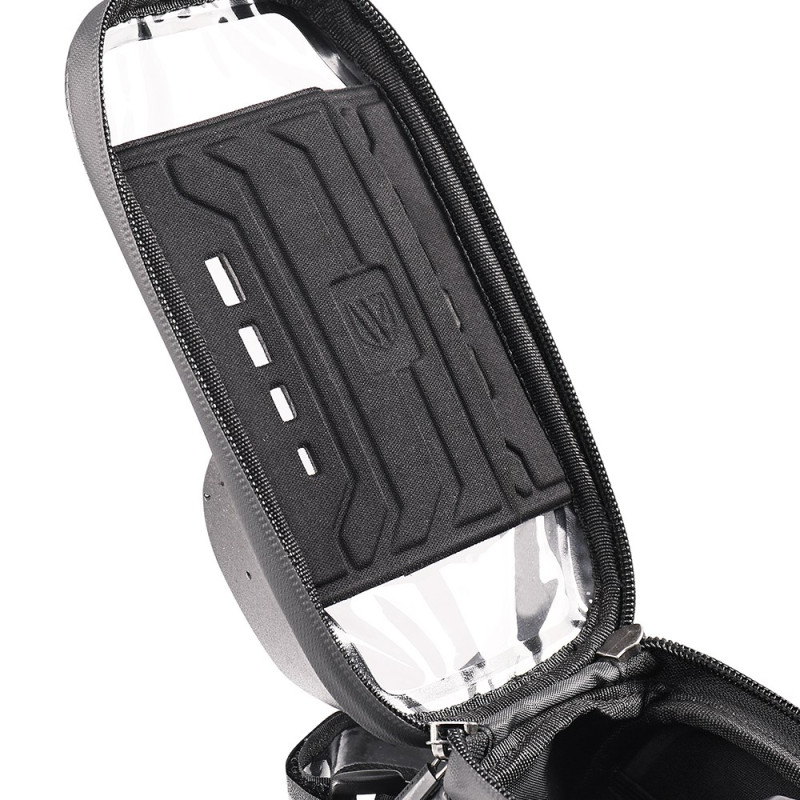 La combinazione di un'estetica moderna in "fibra di carbonio" con la protezione dagli impatti è la promessa di questa custodie da telaio. Il suo design a cover rigido in EVA protegge i dispositivi dagli urti, mentre il rivestimento in fibra di carbonio le conferisce uno stile raffinato. L'impermeabilità è migliorata da una cerniera resistente all'acqua. La striscia riflettente integrata aumenta la sicurezza passiva di notte. Il parasole migliora la visibilità del touchscreen (fino a 7 pollici) alla luce diretta del sole. L'installazione è rapida e non richiede attrezzi.