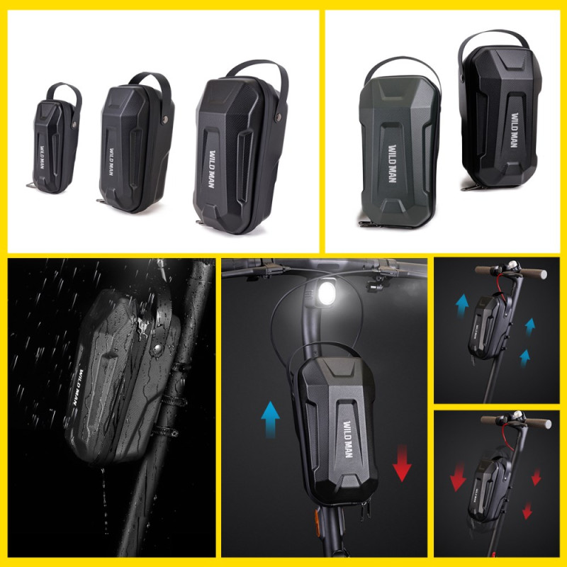 La necessità di mettere al sicuro gli oggetti di valore è soddisfatta dal design a cover rigido di questa custodie WILD MAN. Realizzata in pelle PU e cover rigido in EVA, offre un'eccellente protezione dagli urti, anche in caso di caduta dello scooter. Il sistema di montaggio a sgancio rapido consente l'installazione e la rimozione immediata dal manubrio. Con una capacità di 4,5 litri, offre uno spazio compatto per gli oggetti essenziali senza compromettere la manovrabilità. Il suo aspetto elegante si integra perfettamente con il design moderno dei veicoli elettrici.