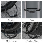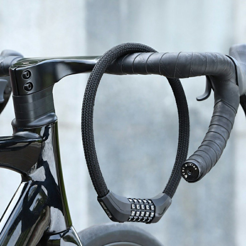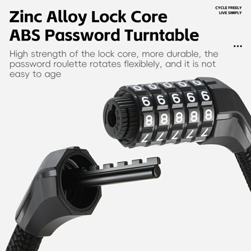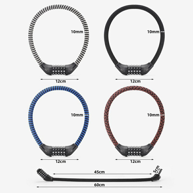 La sicurezza senza chiavi e l'efficacia contro i furti sono garantite dal sistema di combinazione ad alte prestazioni di questo dispositivo antifurto. La serratura a cinque cifre elimina la necessità di chiavi e offre 100.000 combinazioni per un elevato livello di protezione. Il cavo interno in acciaio è rinforzato per garantire la massima durata. Il rivestimento esterno in tessuto di polipropilene protegge il supporto della bicicletta dai graffi ed è piacevole al tatto quando fa freddo. La testa in lega di zinco assicura un meccanismo robusto. La lunghezza di 60 cm e il design compatto lo rendono ideale per il trasporto quotidiano.