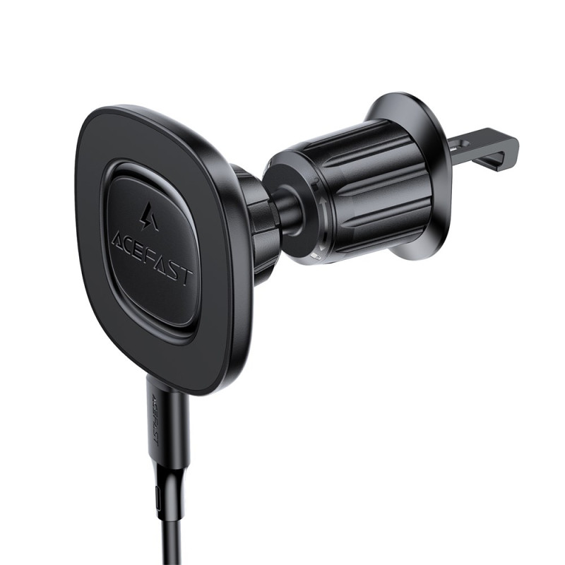 Caricatore magnetico wireless per auto che offre una ricarica rapida fino a 15W. Si fissa saldamente alla presa d'aria con una superficie in silicone antiscivolo. Compatibile con smartphone da 4,7 a 6,9 pollici. Design elegante e minimalista.
