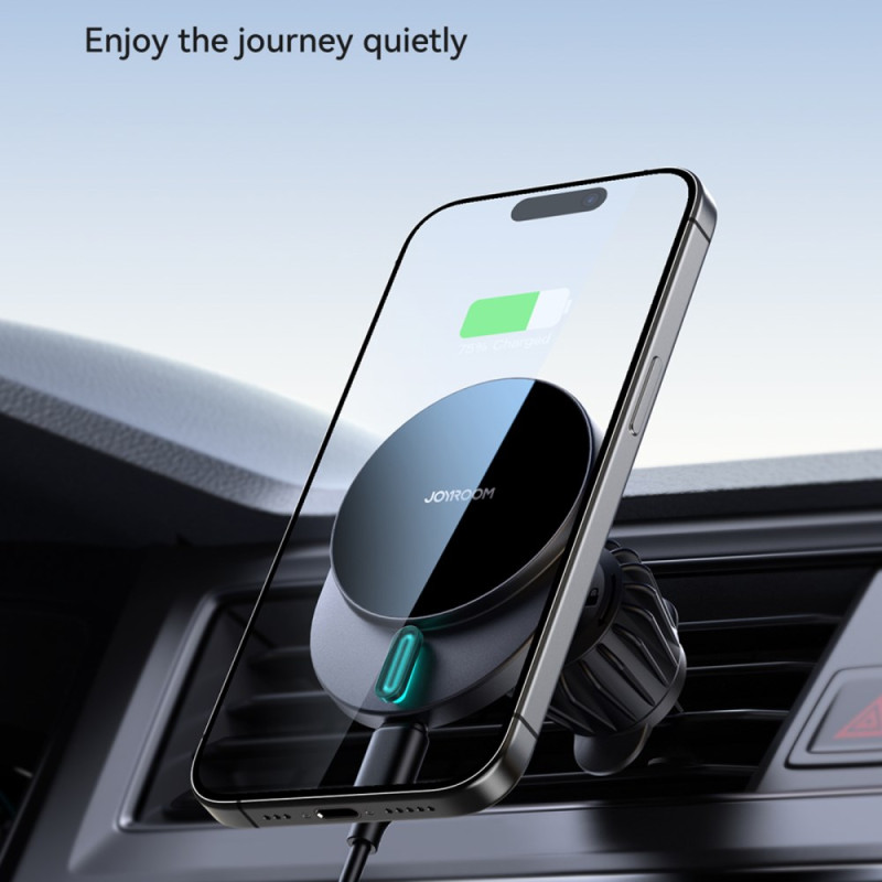 Ricarica il tuo smartphone in sicurezza con questo supporto magnetico wireless da 15W. Si fissa in modo sicuro a una griglia di ventilazione, ruota di 360° e si allinea automaticamente per una ricarica rapida ed efficiente. Funzionamento con una sola mano per una maggiore comodità.