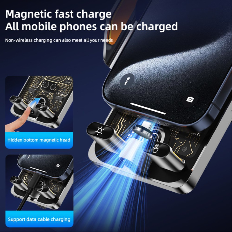 Caricatore wireless per auto ad alte prestazioni con carica rapida da 66 W e sensore automatico a infrarossi. Compatibile con smartphone da 4,0 a 7,0 pollici. Design elegante e moderno per la migliore esperienza di ricarica in movimento.