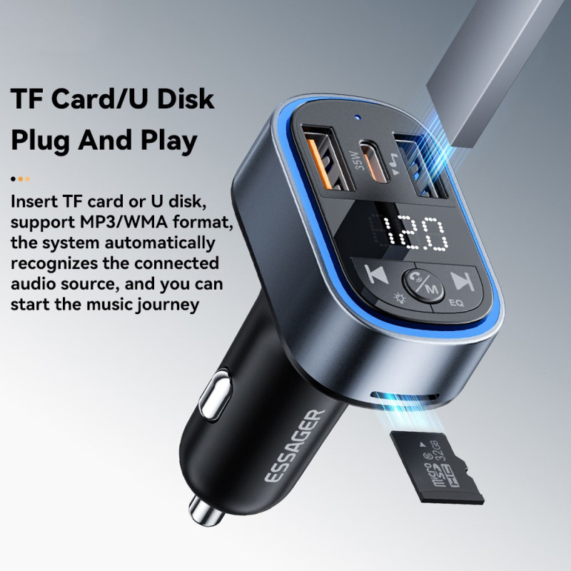 Trasformate il tuo viaggio con questo caricatore smart per auto a doppia porta da 35W PD. Godetevi la ricarica simultanea ultraveloce, il trasmettitore FM integrato e la tecnologia Bluetooth 5.3 per uno streaming audio wireless impeccabile.