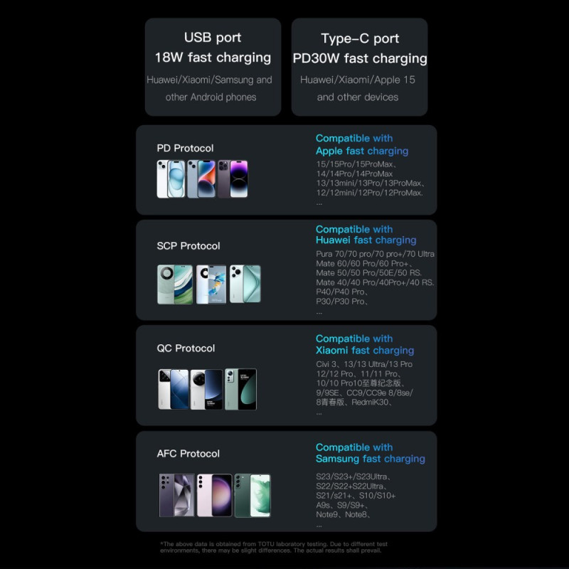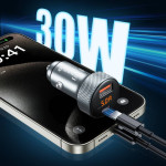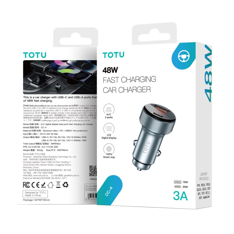 Caricate i tuoi dispositivi in movimento con il caricabatterie da auto TOTU CC-4. Godetevi 48W di potenza totale su due porte (USB-A 18W + Type-C 30W PD) per una ricarica ultraveloce e simultanea di smartphone, tablet e laptop.