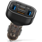 Caricate fino a 6 dispositivi contemporaneamente con questo caricabatterie da auto compatto da 63W. Con 3 porte USB e 3 porte PD Type-C, offre una ricarica rapida ed efficiente proteggendo i dispositivi. Il suo design elegante con LED a 7 colori aggiunge un tocco unico.