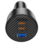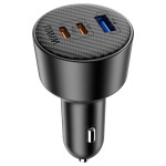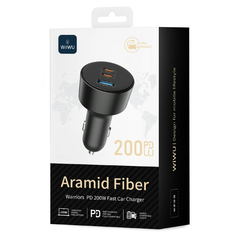 Caricabatterie da auto ultrapotente da 200W con 3 porte (2x USB-C 100W + 1x USB-A 60W). Carica simultaneamente laptop, tablet e telefoni alla massima velocità. Struttura robusta e compatta con sistema di protezione smart a 6 livelli.