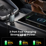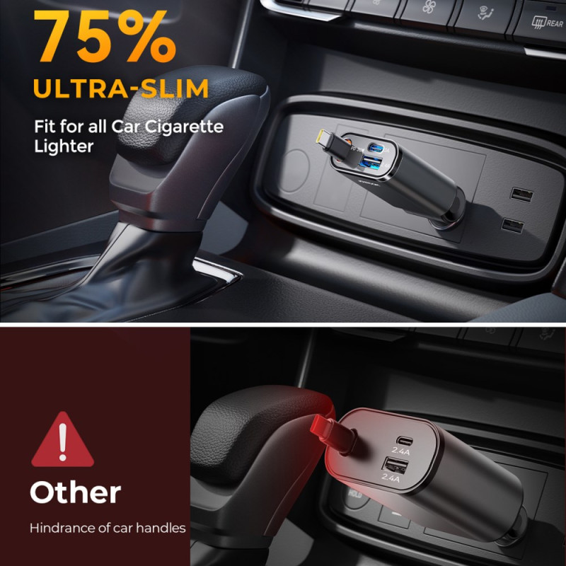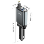 Caricabatterie da auto ultra potente da 45W con cavo Type-C retrattile da 80 cm integrato. Carica fino a 3 dispositivi contemporaneamente grazie alle porte USB-C e USB-A aggiuntive. Compatibile con tutti i protocolli di ricarica rapida (PD3.0, QC4, PPS). Design compatto e portatile...