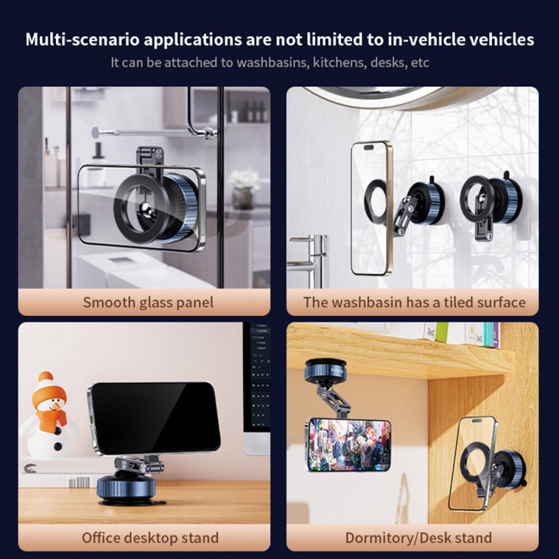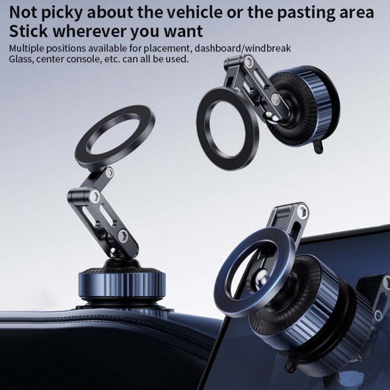 Innovativo supporto magnetico per auto con tecnologia a ventosa. Rotazione a 360° per un angolo di visione ottimale. Compatibile con tutti gli smartphone di dimensioni superiori a 4,7". Facile installazione sul cruscotto.