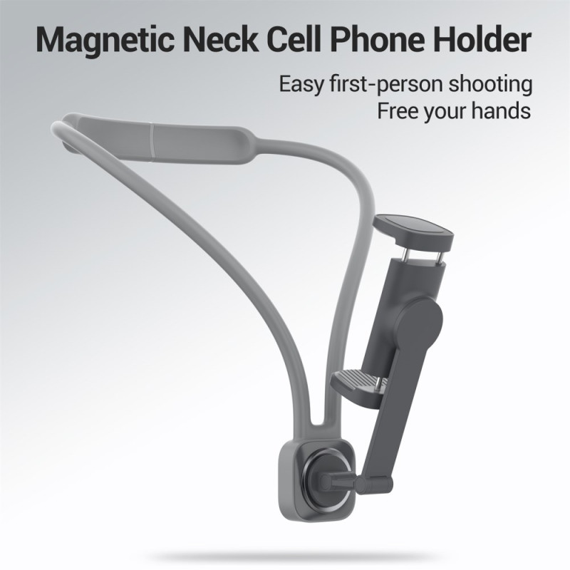 Strumento creativo modulare per eccellenza, questo supporto magnetico è adatto sia per riprese in movimento che statiche. Il design POV con archetto da collo consente una registrazione coinvolgente a mani libere. Per una maggiore stabilità, è incluso un mini treppiede, ideale per i selfie di gruppo e le riprese fisse. Il collare flessibile e rivestito in silicone assicura una vestibilità confortevole senza causare dolore. Il sistema di fissaggio magnetico consente di montare e smontare rapidamente il telefono. È compatibile con tutti gli smartphone (larghezza 6-11 cm).