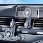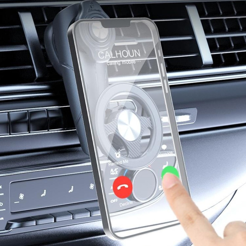 L'accesso immediato al dispositivo è garantito dalla forza magnetica, mentre il gancio assicura un fissaggio stabile alla griglia. Questa supporto utilizza potenti magneti per una presa sicura e consente un facile utilizzo con una sola mano. Il braccio esteso offre flessibilità per una regolazione precisa dell'angolo di visione. Il supporto posteriore, con il suo robusto gancio, si fissa saldamente alle alette di ventilazione, garantendo una maggiore stabilità anche su strade dissestate. Il rivestimento in silicone protegge il telefono ed evita che scivoli.