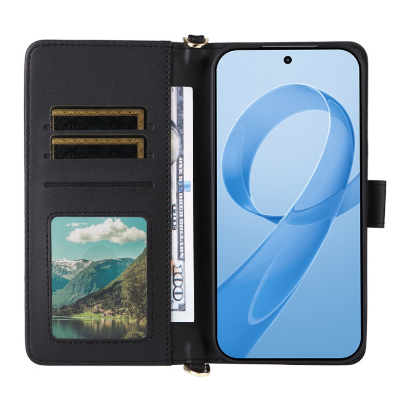 Elegante cover a portafoglio con supporto regolabile e tracolla rimovibile. Dispone di 6 scomparti per carte e 1 scomparto per banconote. Realizzata in pelle PU premium e TPU resistente per una protezione completa contro urti e graffi.