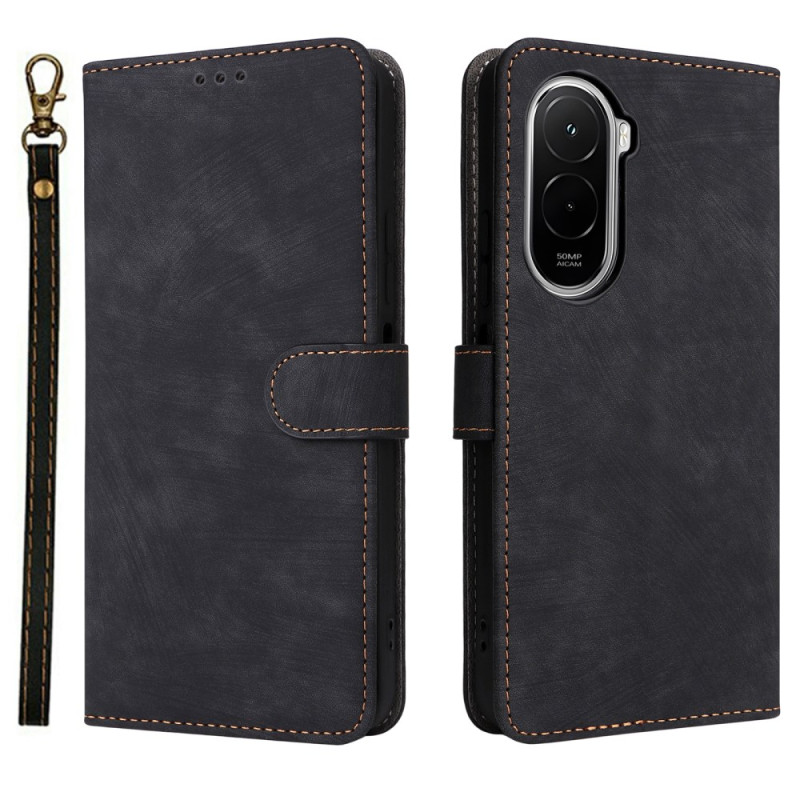 Étui portefeuille élégant en cuir PU pour Xiaomi Poco M7 4G. Protection RFID intégrée, 3 emplacements cartes et porte-monnaie. Fonction support mains libres avec fermeture magnétique sécurisée. Dragonne incluse pour un transport facile.