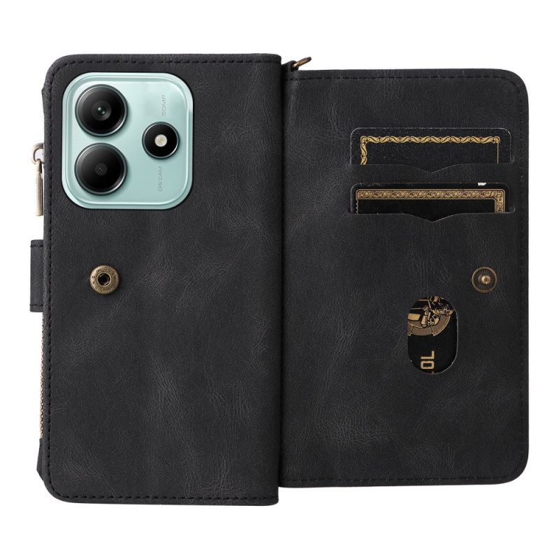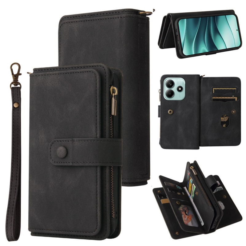 Découvrez l'étui portefeuille multifonction pour Xiaomi Redmi Note 14 5G / Poco M7 Pro 5G. Avec 15 emplacements pour cartes, une poche zippée sécurisée et une dragonne détachable, cet étui combine style et praticité pour protéger votre téléphone au quotidien.