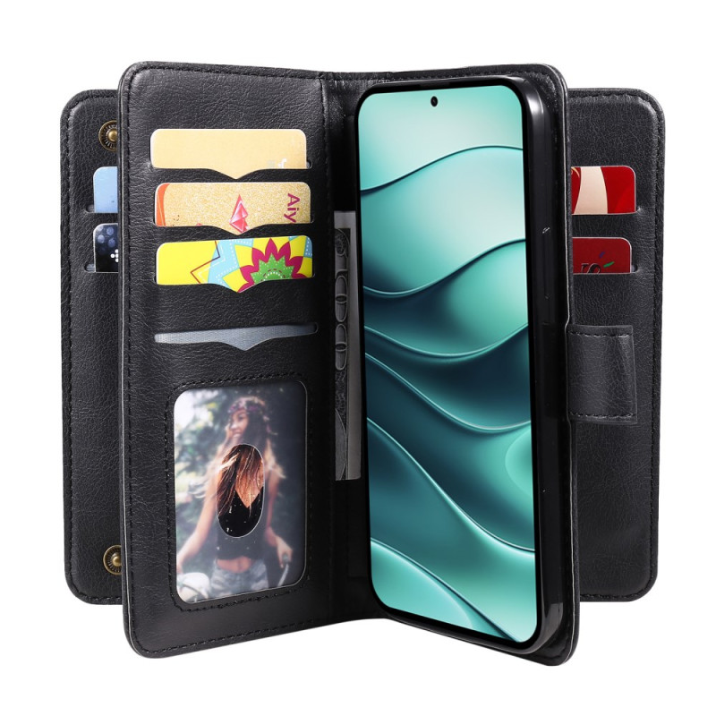 Étui multifonction élégant avec 10 emplacements pour cartes et compartiment pour espèces. Doté d'une fermeture magnétique sécurisée et d'un support réglable pour visionnage mains libres. Protection complète contre rayures et chutes quotidiennes.